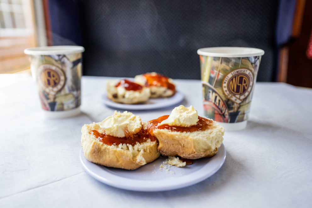 Enjoy your Cream Tea on the return journey leaving Minehead at 15.25 on the majority of dates with a later return time of 16.05 on 14th & 25th May and 11th June only.